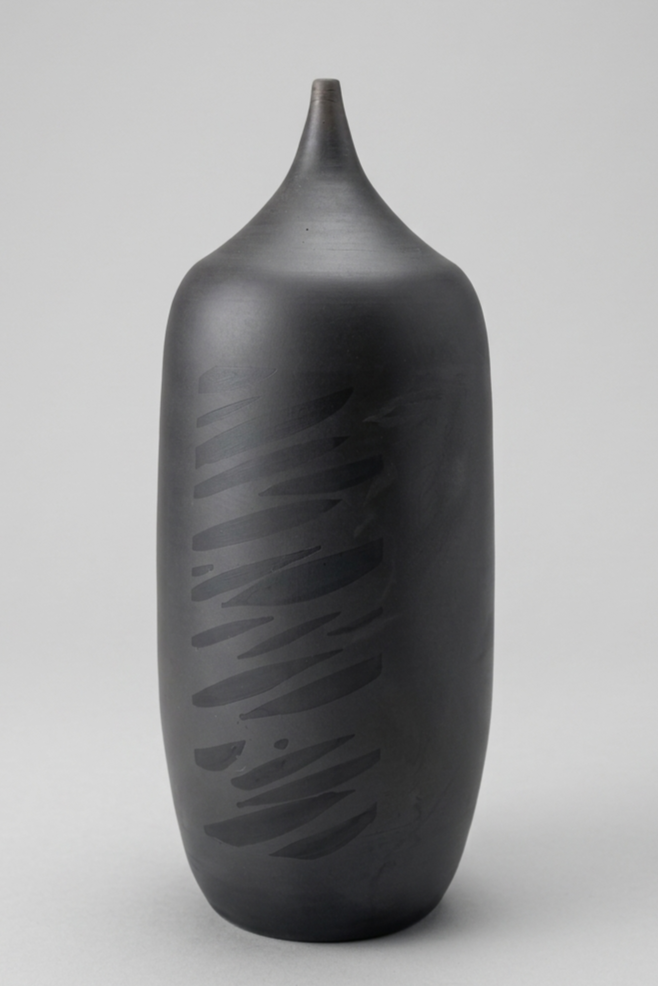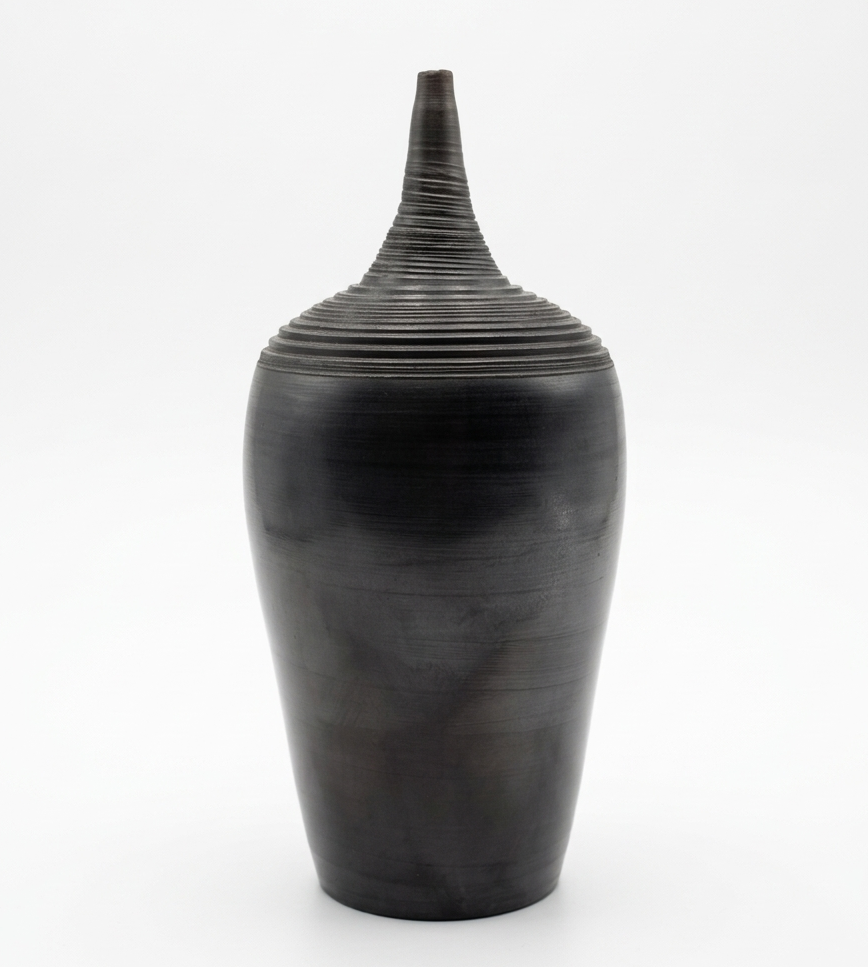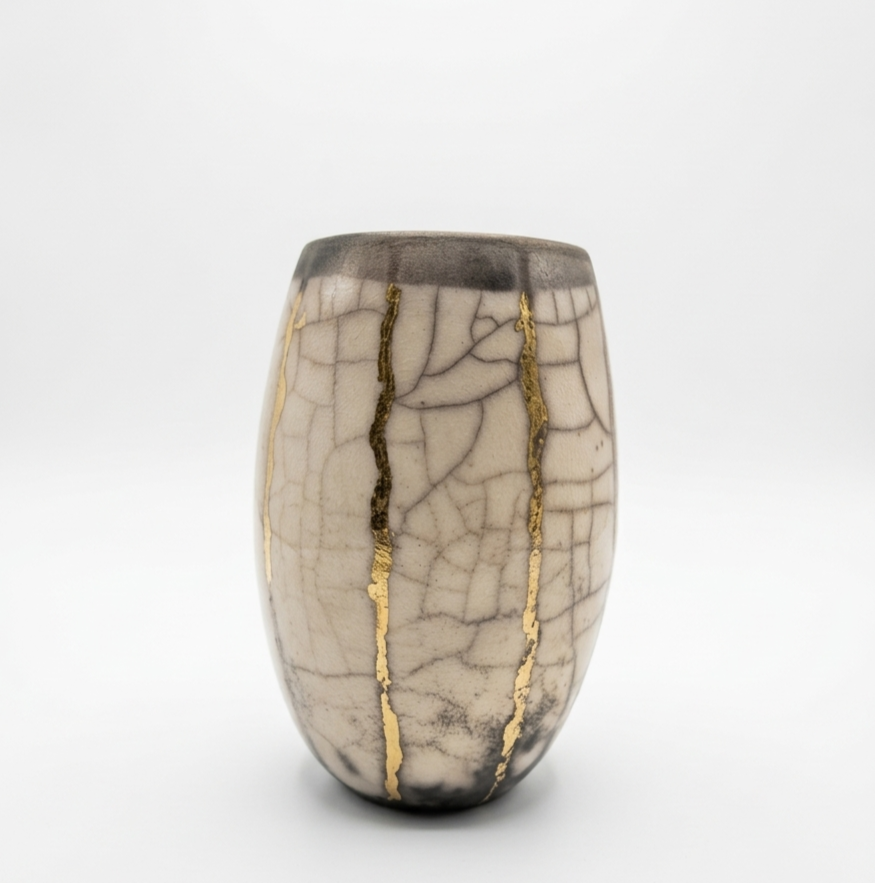 À travers les techniques du Raku nu et du noir de feu, je m’attache à révéler l’empreinte du feu et de la fumée, laissant naître des surfaces marquées, vibrantes et imprévisibles. Chaque cuisson devient alors un moment de dialogue avec les éléments, où le hasard et la maîtrise se rencontrent.