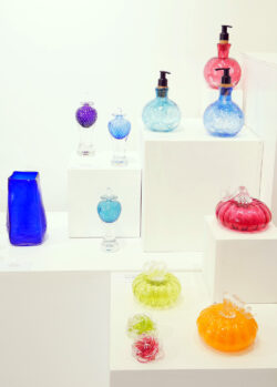 Le duo savoyard ANVI, créé des objets décoratifs, pièces uniques ou utilitaires en verre soufflé à la canne ou en pâte de verre.
