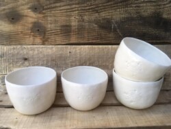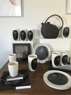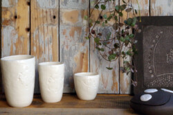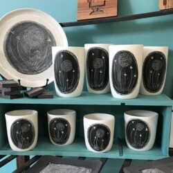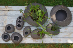 C’est en 2003, lorsque je me suis essayée à la poterie que le travail de la terre fut une révélation pour moi. Je me suis alors formée au métier de tourneur céramiste-potier. Le travail de la terre m’apporte beaucoup : patience, concentration, humilité, émerveillement… Ce que j’aime dans mon métier, c’est la diversité que je lui apporte. Je fabrique, je vends, je transmets, je partage, je rencontre… Mes céramiques sont inspirées par la nature et on les reconnait par leurs contrastes, blanc et noir, doux et rugueux, lisse et texturé, mat et brillant et également grâce à cette petite étoile sous chaque pot qui est l’empreinte d’une graine de coquelicot.