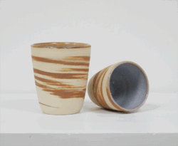 J’affectionne la technique des terres mêlées : une fusion de deux grès qui sous l’action de mes mains et de mon travail de tournage, laisse apparaître un décor unique à chaque céramique. C’est toujours une découverte que m’offre la matière avec tantôt des ondulations de terre unie, marbrée, ou mélangée à souhait.