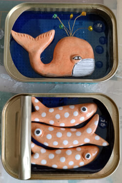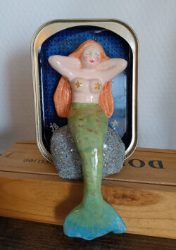 Je modèle aussi un petit monde vivant et coloré, emplissant des boites, pour occuper un petit coin de mur, de table ou l’étagère … Compagnon poétique du quotidien.