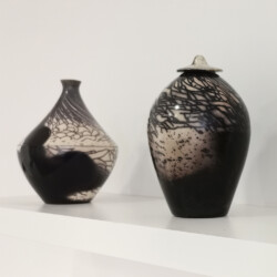 Potier atypique, installé depuis peu à Saint-Julien-Molin-Molette dans la Loire, jean-Jacques fabrique des poteries en terre sigillée depuis plus de 40 ans. C’est un retour aux sources d’où le nom de l’atelier, « Poterie de la source ». Sa passion est devenue son métier qu’il connait sur le bout des doigts. La science, la chimie et la physique sont des connaissances indispensables à son travail. Ce passionné collecte des terres locales, qu’il laisse décanter pour ensuite engober et polir ses pièces. De nombreuses étapes se succèdent pour aboutir à un pot. Le potier peut jouer avec les réductions et l’oxydation. Selon le type de four (électrique, gaz ou bois) la cuisson n’est pas la même. Jean-Jacques affectionne tout particulièrement les cuissons au bois qui confèrent une chaleur sans pareil à ses pots.