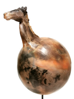 Biscuitée à 1000 degrés, la pièce subit un enfumage. Ainsi j’interromps mon contrôle et laisse mon travail à la merci des forces élémentaires et caprices du hasard.