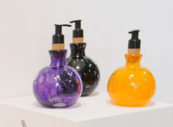 Anne Donzé et Vincent Chagnon qui travaillent en duo le verre sous le nom d’ANVI, Delphine Gabon qui est vitrailliste et bientôt Catherine qui travaille le verre filé. Trois techniques différentes pour un même matériau, le verre.